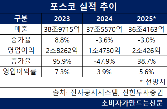 15일 증권가에 따르면 포스코는 올해 매출 36조4163억 원, 영업이익 2조426억 원을 기록할 전망이다. 전년 동기 대비 매출은 3% 감소하지만 영업이익은 38.7% 증가한 수치다.