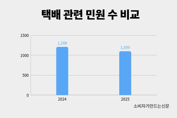 올해 1월1일부터 11월30일까지 소비자고발센터(www.goso.co.kr)에 제기된 택배 관련 제보는 1099건으로 전년 동기 대비 9% 감소했다.