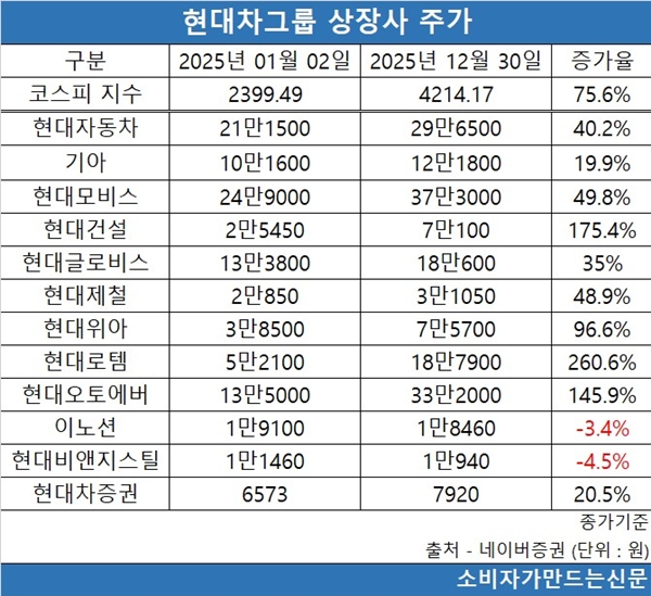 올해 코스피 상승 랠리에서 현대자동차그룹 상장사는 대거 소외된 것으로 나타났다.