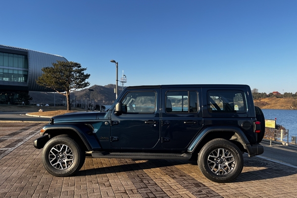 랭글러 패덤 블루의 진가는 주행에서 느낄 수 있었다. 공차중량 2000kg이 넘지만 무리 없이 치고 나가는 모습을 확인할 수 있었다. 가속페달 반응 속도는 묵직한 편으로 즉각적이진 않지만 페달을 깊게 발으면 힘 있게 치고 나갔다. 무거운 차체에서 오는 낮은 무게중심과 탄탄한 하체 덕분에 고속 주행에서도 승차감은 대형 세단에 앉은 듯 편안했다.