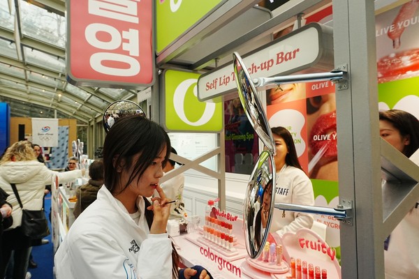 평소에도 ‘올리브영’ 쇼핑을 즐긴다는 최가온은 ‘올리브영’ 부스의 립 터치업 바에서 안내 스탭과 진지하게 컬러 상담을 하고 제품을 실제로 발라보며 K뷰티 체험존을 즐겼다.