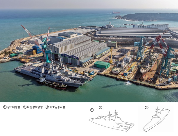 지난 19일 HD현대중공업이 건조했거나 건조 중인 ‘정조대왕함’, ‘다산정약용함’, ‘대호김종서함’ 등 정조대왕급 최신예 이지스 구축함 3척이 HD현대중공업 울산 조선소에 집결했다.