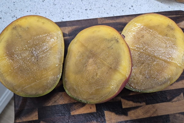 나 씨에 따르면 라이브 방송에서는 판매자가 애플망고를 자르는 족족 속이 노랗게 잘 익어 맛있게 보였다. 프로필 링크를 타고 들어가 10박스, 약 30만 원어치를 구매한 나 씨.