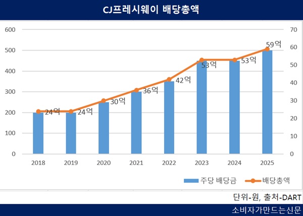 CJ 관계자는 "시장 환경이 주주환원을 권장하고 있어 이에 맞춰 배당 규모도 정해질 것으로 보인다. 다만 이사회를 거쳐 정해지는 부분으로 향후 계획을 구체적으로 밝히긴 어렵다"고 말했다.