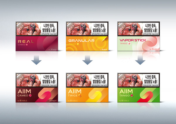 이번 리뉴얼을 통해 ‘릴 에이블’ 전용스틱인 리얼 4종, 그래뉼라 6종, 베이퍼스틱 1종까지 총 11종의 제품이 ‘에임’ 브랜드로 통합된다.