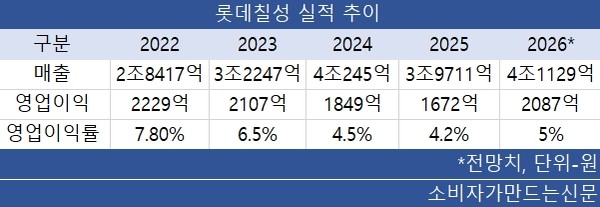 지난 2월 롯데칠성은 올해 매출 4조1000억 원, 영업이익 2000억 원을 목표로 제시했다.
