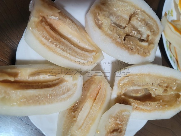 고 씨는 참외 10kg 한 박스를 배송받은 당일 먹으려고 깎다가 깜짝 놀랐다. 물이 주르륵 흐르고 속도 누렇게 썩어 문드러져 있었다. 몇 개 더 깎아봐도 상태는 매한가지였다.
