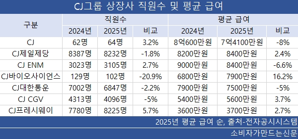 CJ ENM과 CJ대한통운은 직원 평균 급여도 각각 6.6%, 5% 감소했다.