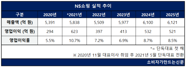 조 대표 체제에서 NS쇼핑은 침체된 홈쇼핑 업황 속에서도 매출이 조금이나마 증가했다. 특히 영업이익률은 조 대표 재임 전인 2020년 5.5%에서 첫해 10.7%로 높아졌고 이후에도 7~8%의 비교적 안정적인 수준을 유지하고 있다.