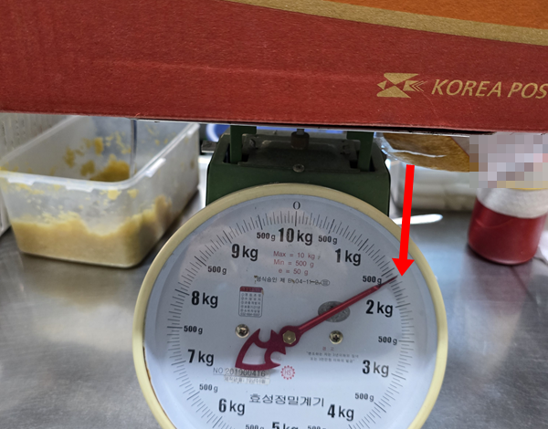 2㎏ 금액을 주고 700g 이상 손해를 본 유 씨는 반품을 요청했다. 입점 업체는 반품을 거절하고 사진을 요구했다. 박스 포함 무게 사진을 보냈지만 업체는 그대로 연락이 끊겼다.