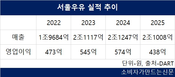 지난해 서울유유 매출은 2조1008억 원으로 전년 대비 1.1% 감소했다. 영업이익은 438억 원으로 23.7% 줄었다.